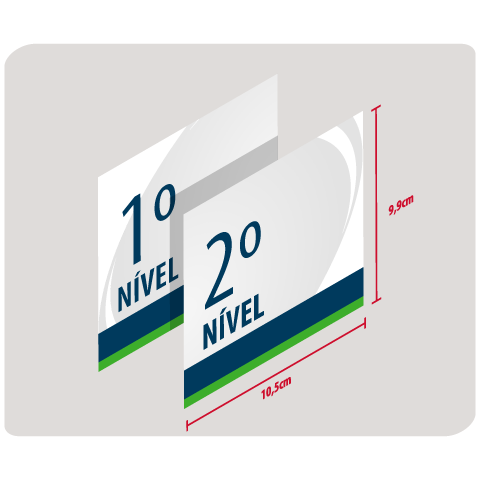 Tamanho 10,5x9,9cm, Impressão Colorida (4x0), Laminação Fosca, Material PS 2mm