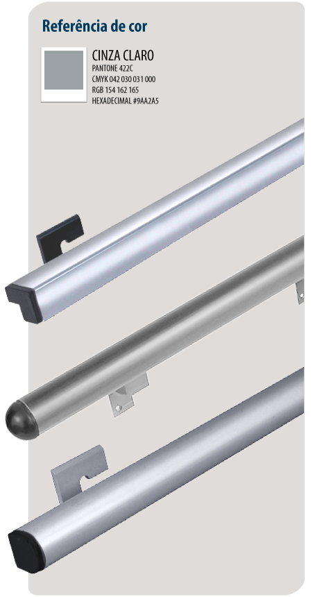 Esse tom garante contraste visual adequado, conforme a NBR 9050:2020, que exige diferenciação entre corrimão e superfície de fundo.