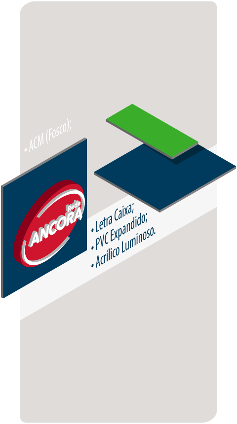 - ACM (Fosco) sobrepondo o material utilizado para faixa "azul" (Base).