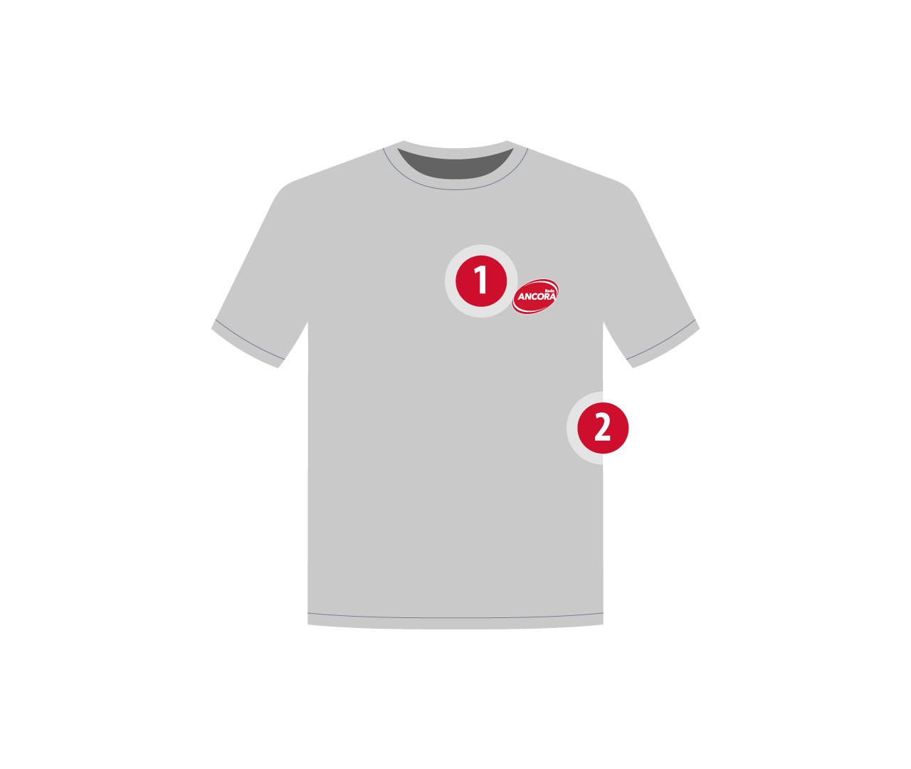 - Logotipo Rede ANCORA bordado no lado esquerdo do peito (consulte as dimensões), respeitando as cores da marca (Vermelho e Branco);